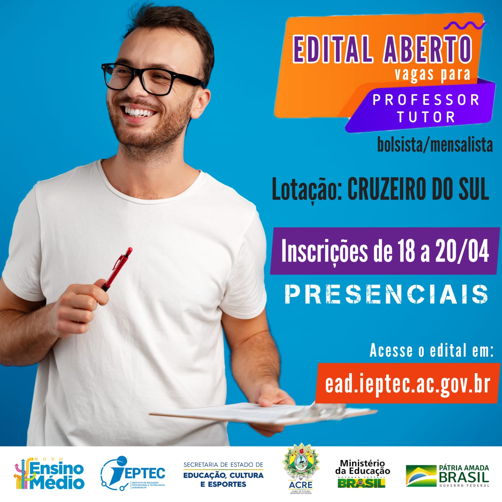 ATENÇÃO!! ABRIMOS PROCESSO SELETIVO COM VAGAS PARA PROFESSOR TUTOR EM CRUZEIRO DO SUL. INSCREVA-SE JÁ!!