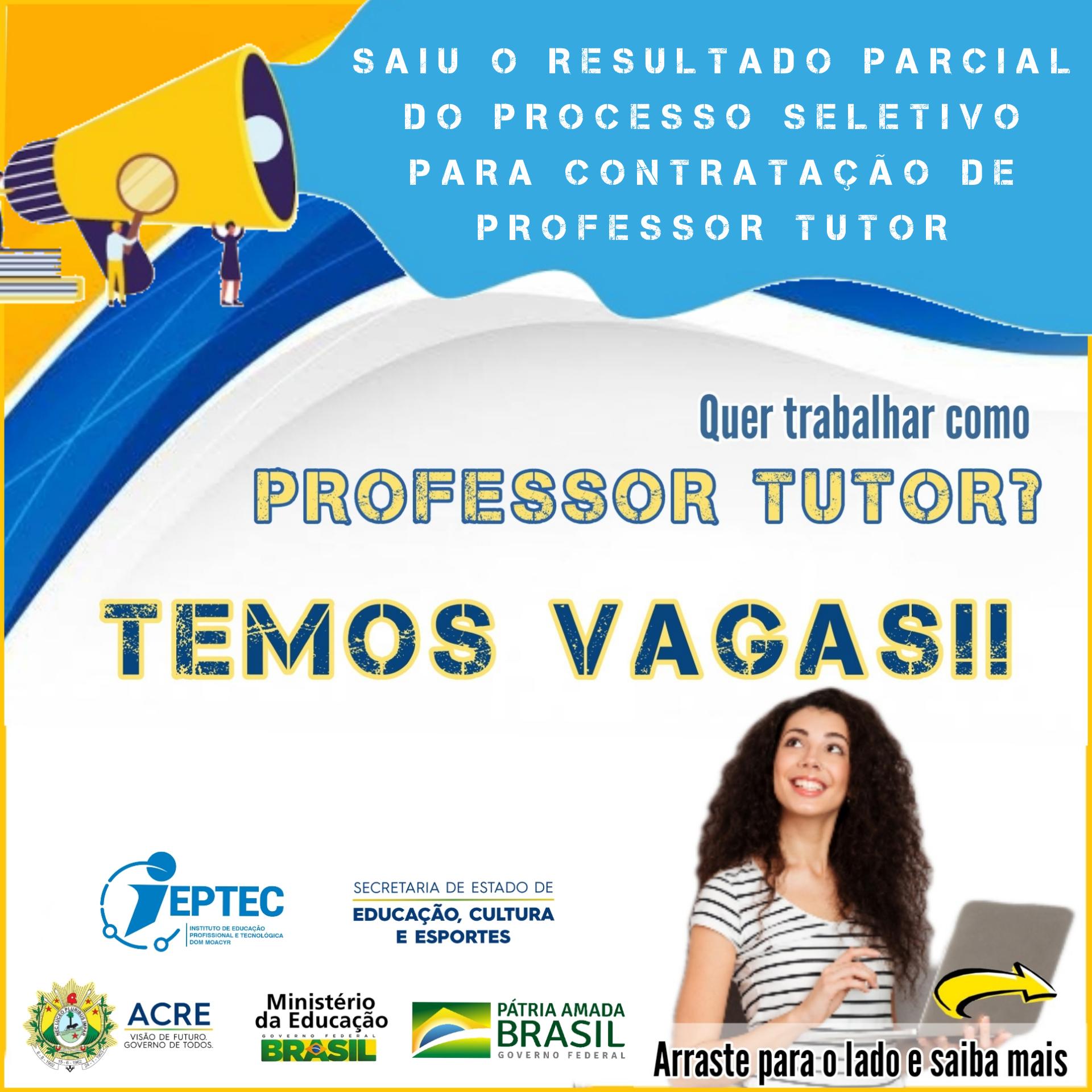 SAIU O RESULTADO PARCIAL PARA CONTRATAÇÃO DE PROFESSOR TUTOR PARA ATUAR NO ENSINO MÉDIO INTEGRADO. CONFIRA A LISTA COM OS NOMES DOS CLASSIFICADOS!