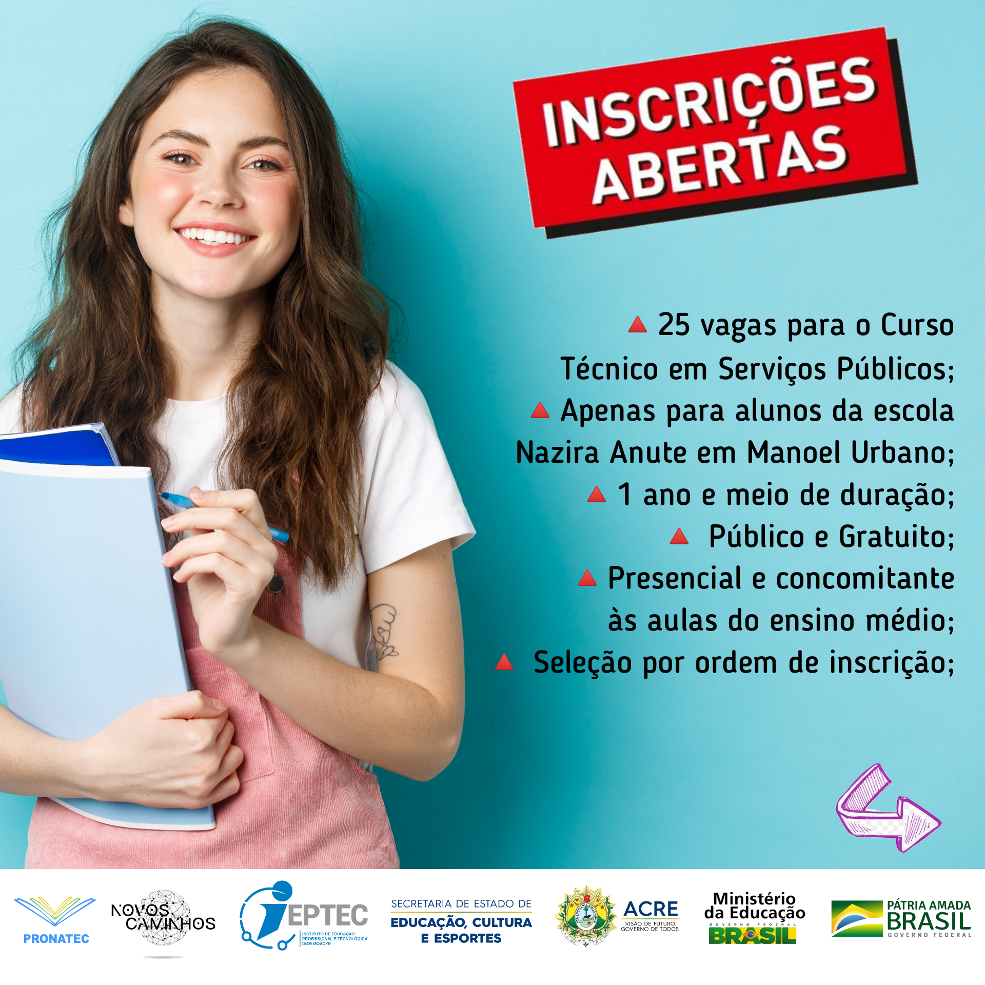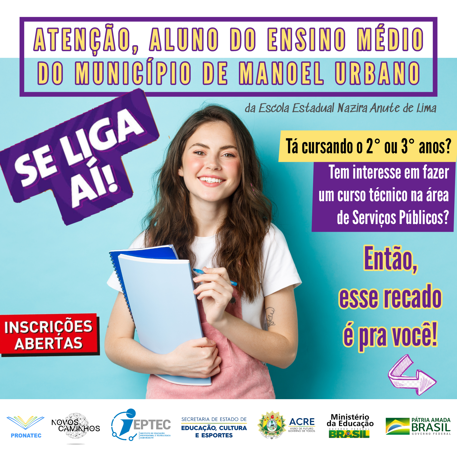 Estuda o 2º ou 3º ano na Escola Estadual Nazira Anute de Lima, no município de Manoel Urbano, e quer ingressar em um curso técnico na área de SERVIÇOS PÚBLICOS?