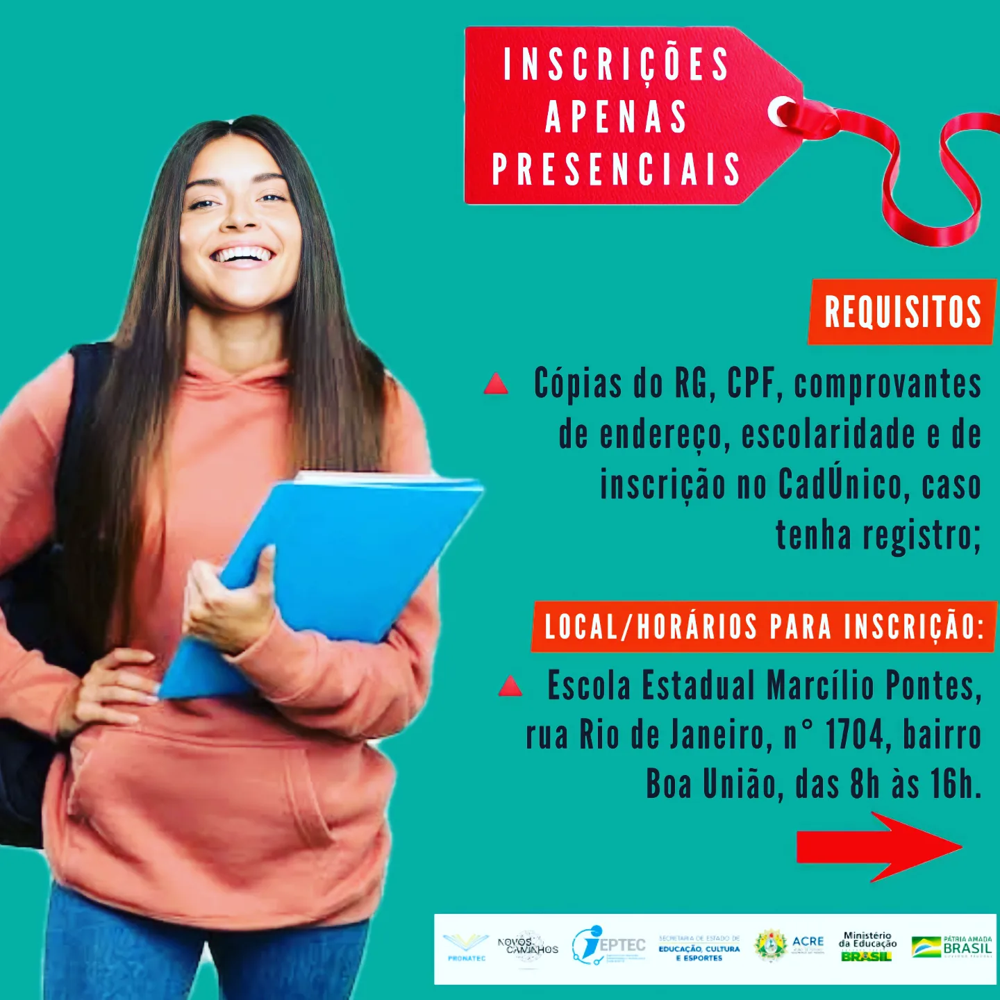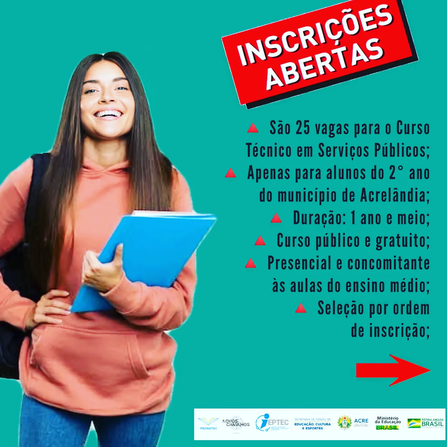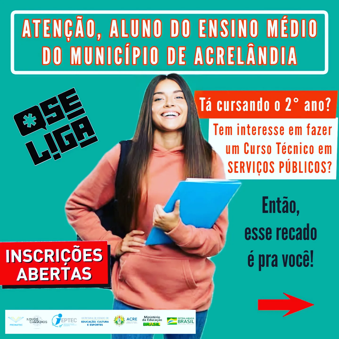 Estuda o 2º ano do ensino médio no município de Acrelândia e quer ingressar em um curso técnico na área de SERVIÇOS PÚBLICOS?