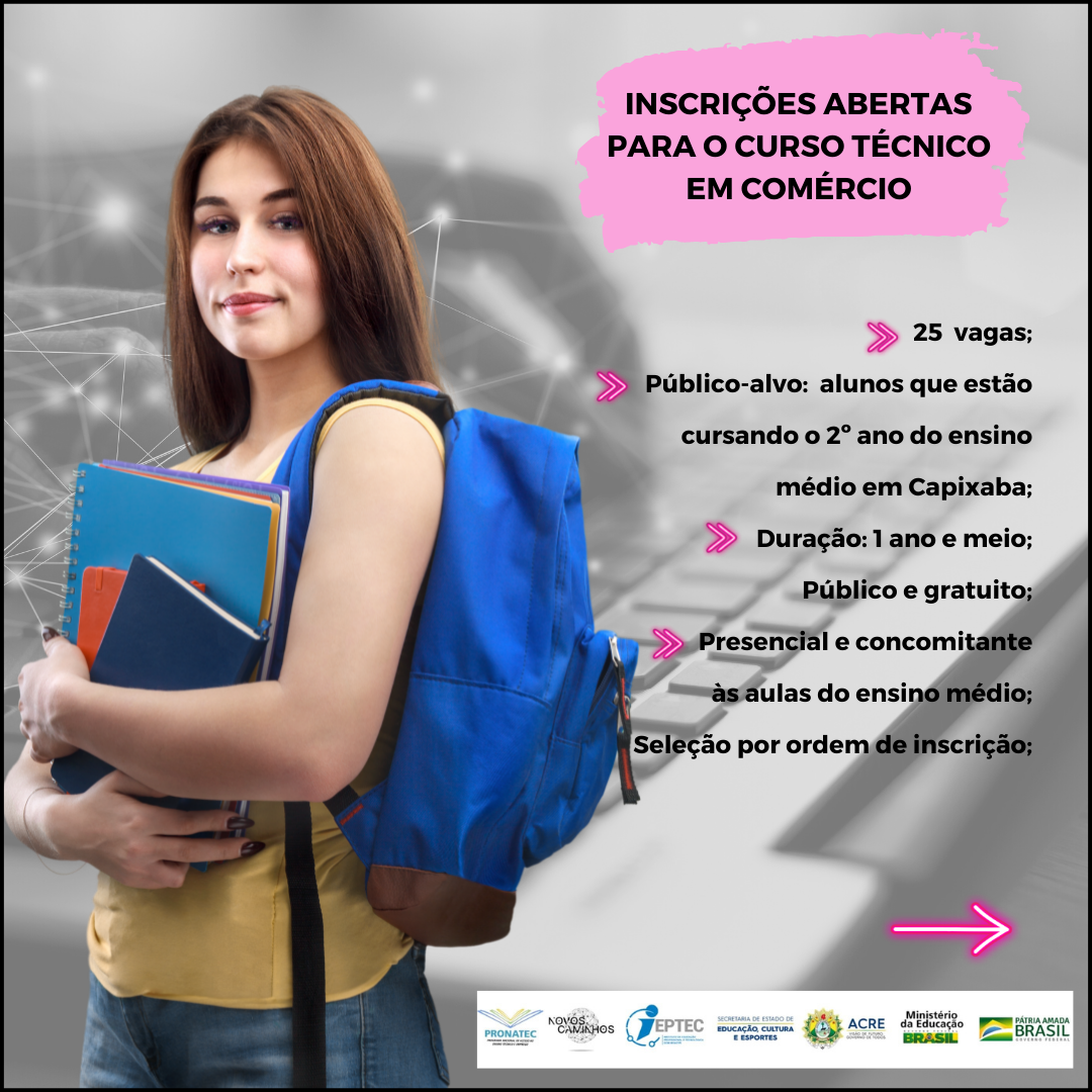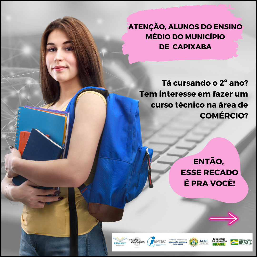 Estuda o 2º ano do ensino médio em Capixaba e quer ingressar em um curso TÉCNICO EM COMÉRCIO?