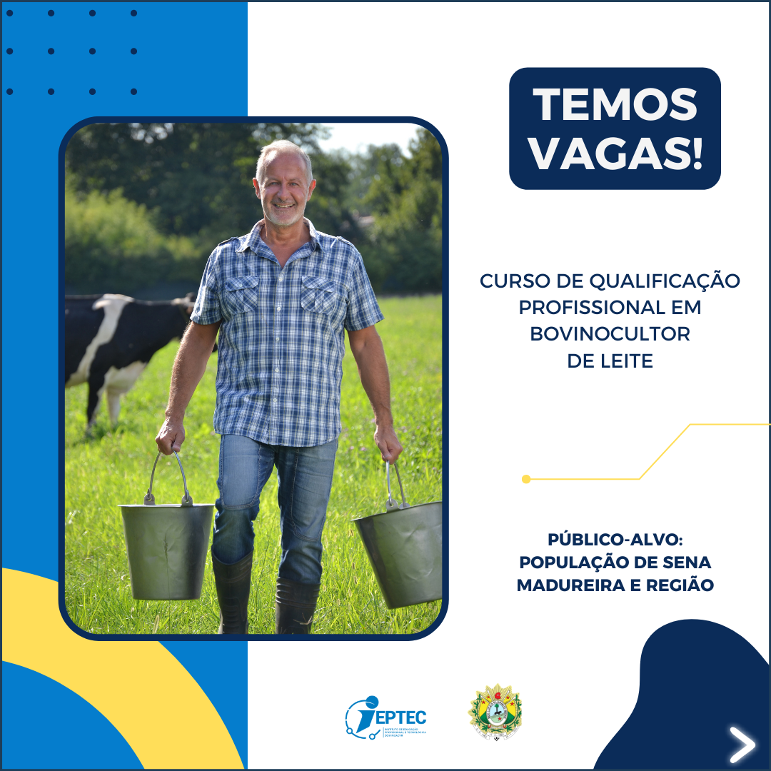 O Ieptec Dom Moacyr dispõe de vagas nos cursos de qualificação profissional nas áreas de Bovinocultor de Leite, Bovinocultor de Corte e Agente de Regularização Ambiental e Rural, como resultado de pactuação do Estado junto ao Programa de Acesso ao Ensino Técnico e Emprego (Pronatec), em sua nova ação denominada Novos Caminhos.